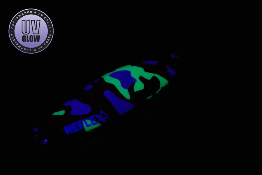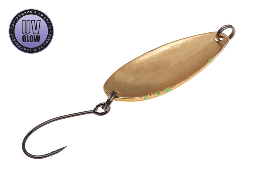 Blizgutės ilgis 35mm, plotis 13mm, svoris 3,1gr. Mustad kabliukai. Pagamintos iš 1mm storio žalvario. Šviečia UV šviesoje