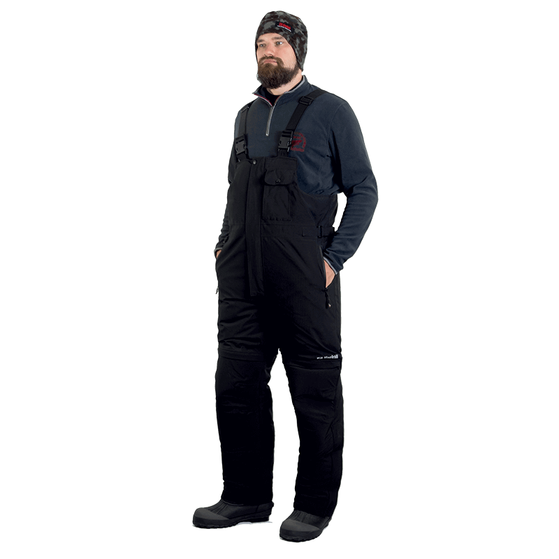 Pusiau kombinezonai, kaip ir turėtų būti žieminiam kostiumui, turi sintetinę pūkinę izoliaciją. Putplasčio įdėklai kombinezono gale ir keliuose suteikia funkcionalumo. Tai ir apsauga nuo šalčio, nelygių paviršių, ir atrama ant vandens.