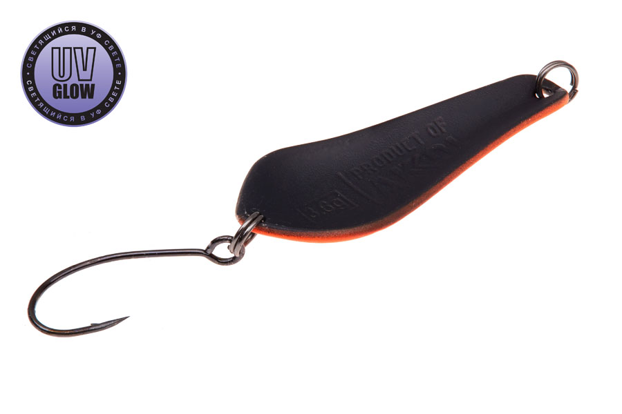 Vartiklės svoris  – 3,6g, ilgis 40mm, plotis 15mm. Blizgutės pagamintos iš 1mm storio žalvario, su Mustad kabliuku. Šviečia UV šviesoje.