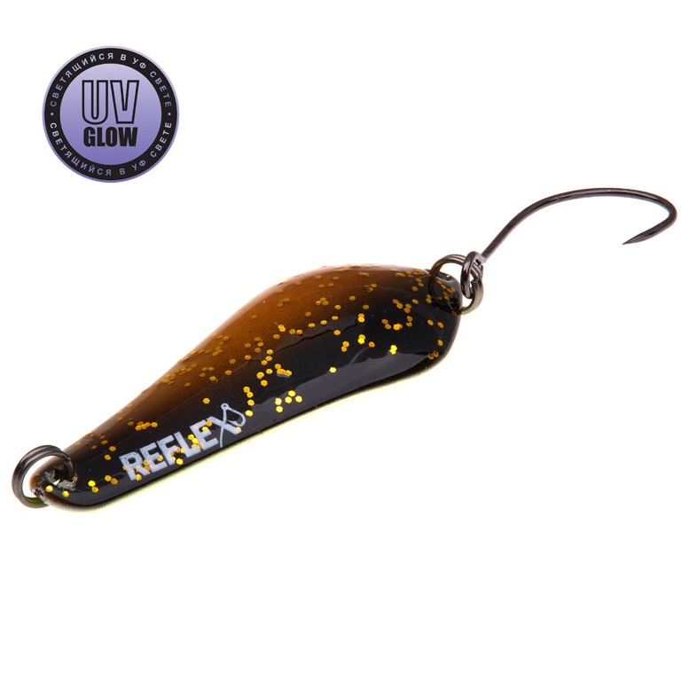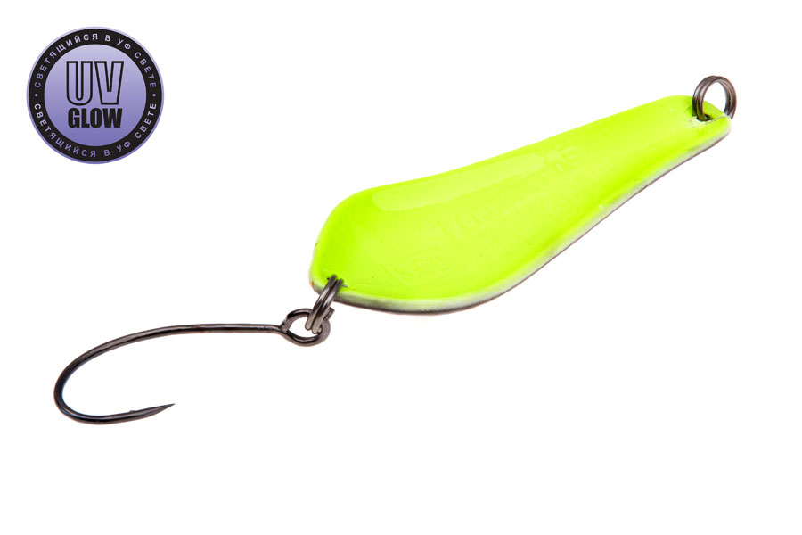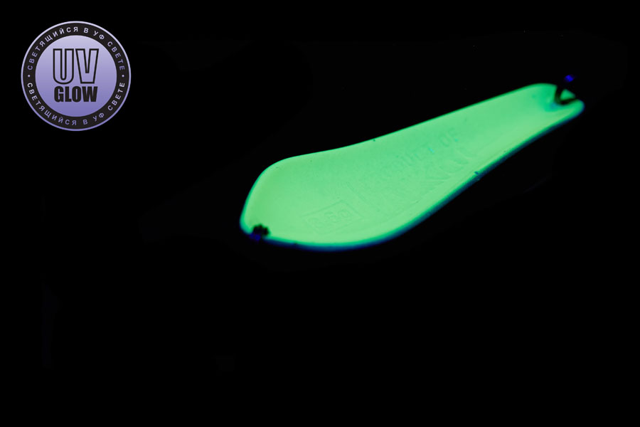 Vartiklės svoris – 3,6g, ilgis 40mm, plotis 15mm. Blizgutės pagamintos iš 1mm storio žalvario, su Mustad kabliuku. Šviečia UV šviesoje.