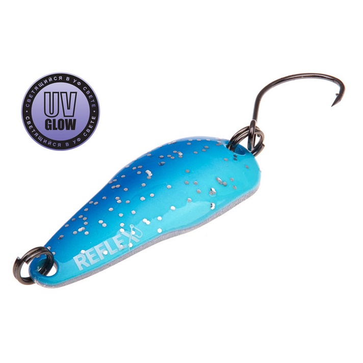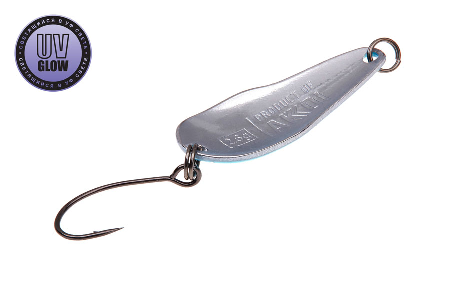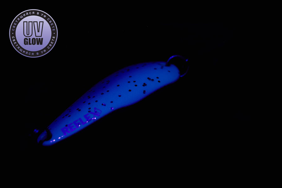 Vartiklės svoris – 2,6g, ilgis 32mm, plotis 12mm. Blizgutės pagamintos iš 1mm storio žalvario, su Mustad kabliuku. Šviečia UV šviesoje