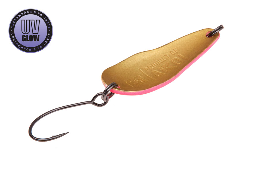 Vartiklės svoris  – 2,6g, ilgis 32mm, plotis 12mm. Blizgutės pagamintos iš 1mm storio žalvario, su Mustad kabliuku. Šviečia UV šviesoje