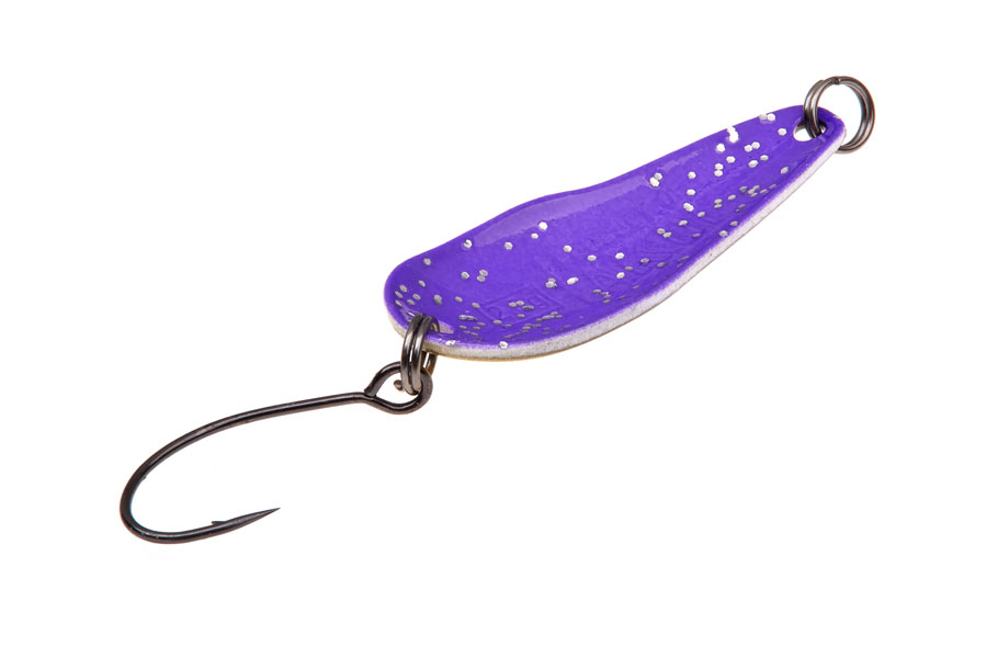 Vartiklės svoris – 2,6g, ilgis 32mm, plotis 12mm. Blizgutės pagamintos iš 1mm storio žalvario, su Mustad kabliuku.