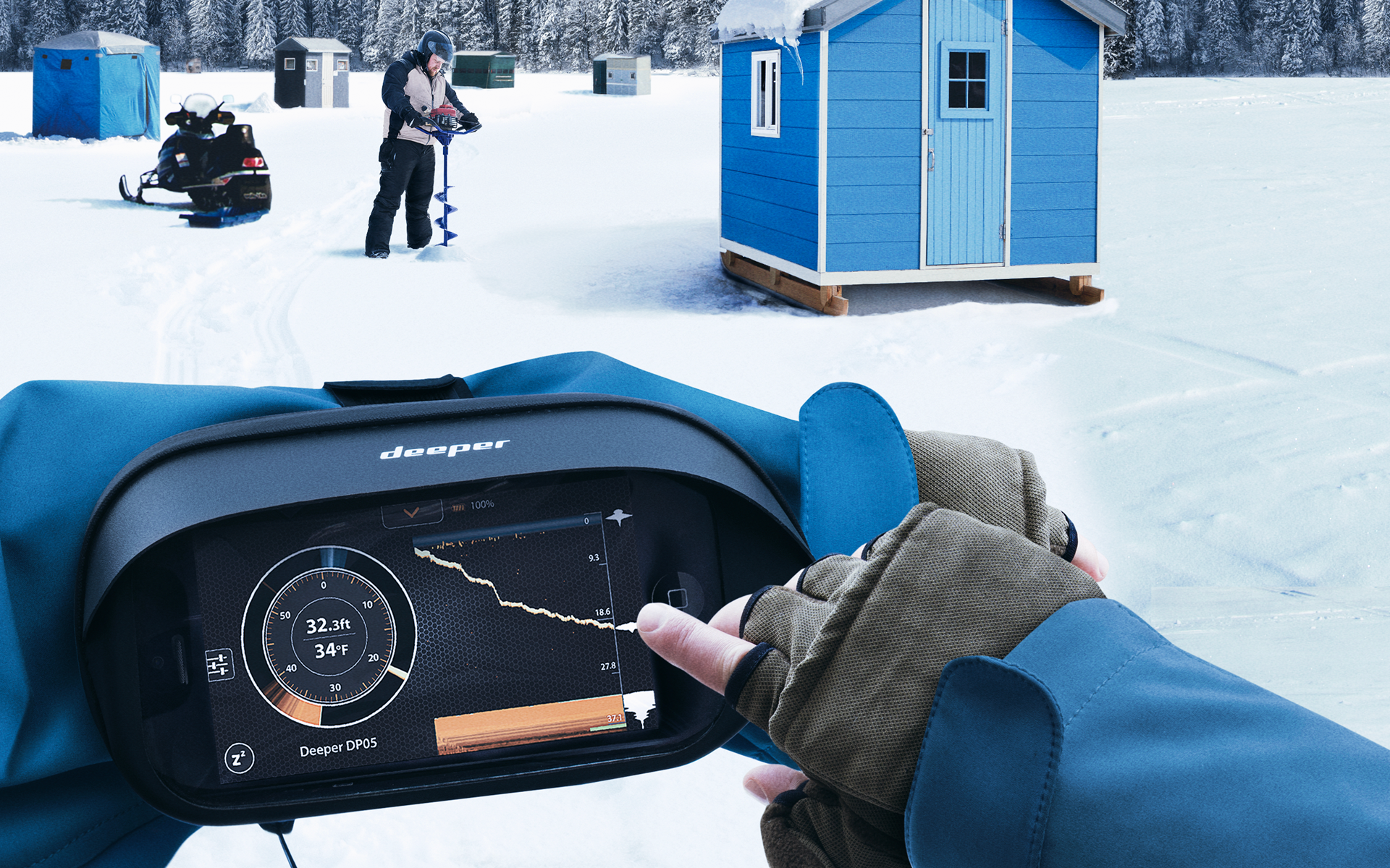 Dar niekada nebuvo taip paprasta apsaugoti telefoną ir jį laikyti lengvai pasiekiamą poledinės žvejybos metu. Tiesiog pritvirtinkite Deeper Winter Smartphone Case 2.0 dėklą prie savo rankos specialiu dirželiu ir išnaudokite visus išmaniojo telefono privalumus žvejodami ant ledo.