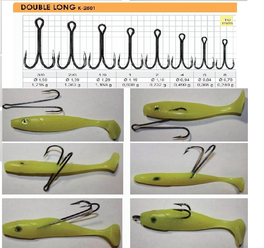 Double Long Shank – dvišakiai kabliukai yra juodi, plieniniai ir aštrūs. Nesulituoti ir pailginto dilbio, galima praskiesti 60 ° kampu. Patogu naudoti žvejojant su minkštais masalais. Pagaminti iš ypač tvirto plieno.Tamsi nikelio danga ne tik leidžia paslėpti kablys vandenyje, bet ir apsaugo nuo rūdžių. Priklausomai nuo žuvies, kurią gaudote dydžio, galite pasirinkti tinkamą dydžio kablį iš mūsų prekių asortimento.