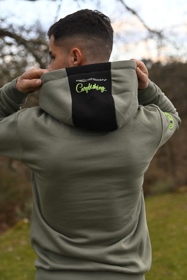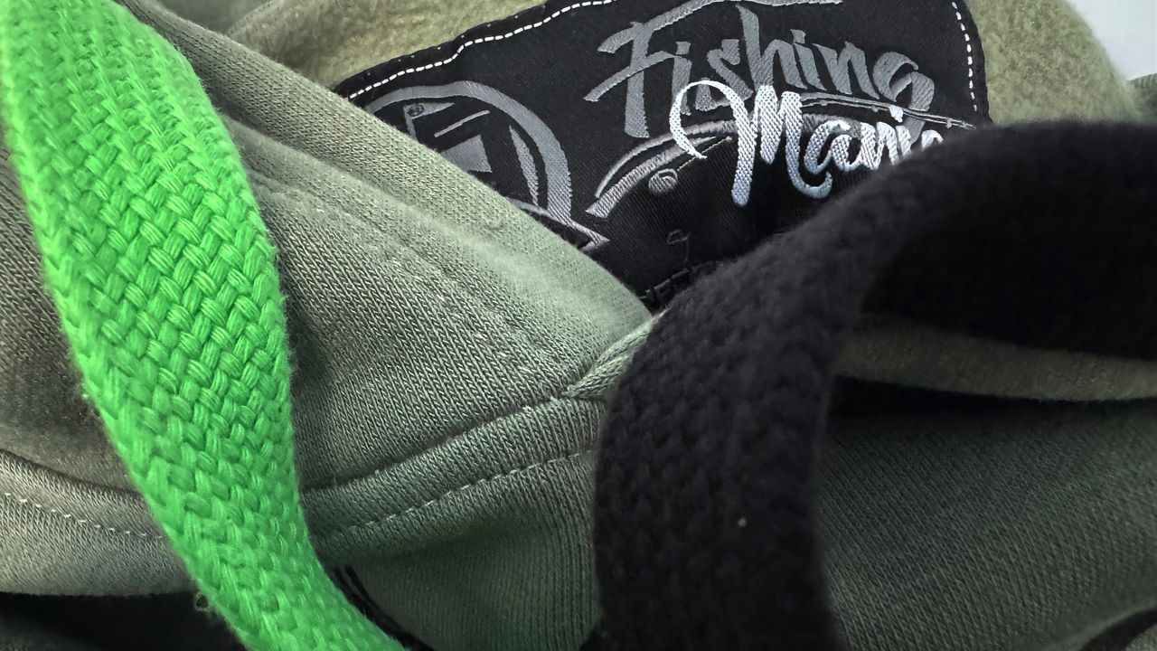 Fishing Mania Carpfishing green – grafika gerai žinoma mūsų klientams, todėl šiame atnaujinime mūsų dizaino komanda pasirinko patrauklią žalią medžiagą ir panaudojo tik didelių karpių kontūrus ant krūtinės, taip sukurdama švelnesnį efektą, tačiau derindama ją su ryškesnėmis detalėmis, tokiomis kaip ryškiai žalias raštas, dviejų spalvų virvelės, priderintos prie rašto, ir trijų juostų kontrastingos spalvos gobtuvas su reljefiniu „Carpfishing“ raštu.
