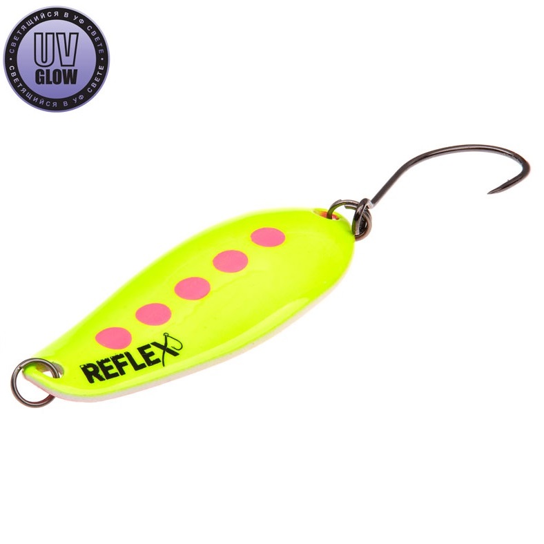 Vartiklės svoris – 4.8g, ilgis 42mm, plotis 16mm. Blizgutės pagamintos iš 1mm storio žalvario, su Mustad kabliuku. Šviečia UV šviesoje.