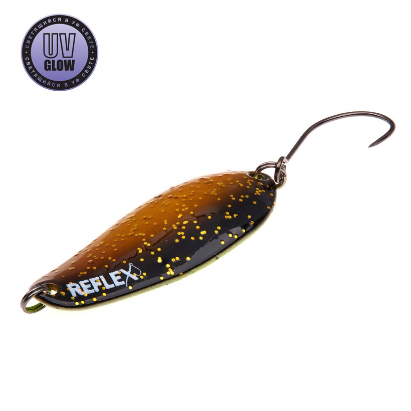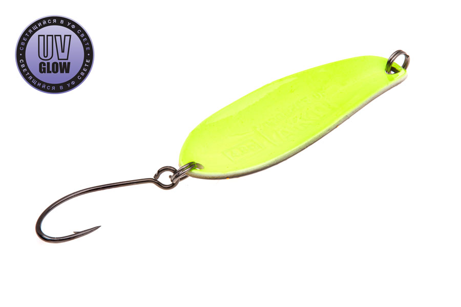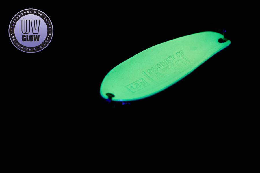 Vartiklės svoris – 4.8g, ilgis 42mm, plotis 16mm. Blizgutės pagamintos iš 1mm storio žalvario, su Mustad kabliuku. Šviečia UV šviesoje.