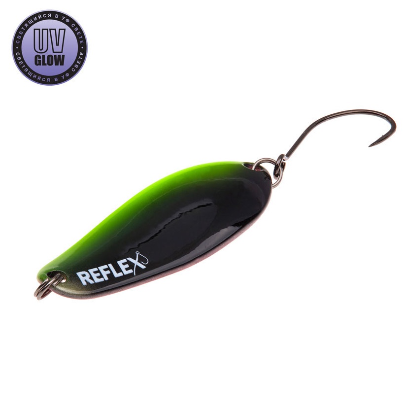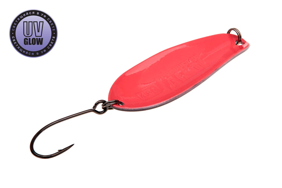 Vartiklės svoris – 4.8g, ilgis 42mm, plotis 16mm. Blizgutės pagamintos iš 1mm storio žalvario, su Mustad kabliuku. Šviečia UV šviesoje.