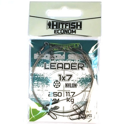 Hitfish Leader 1×7 – pavadėliai yra pagaminti supinant iš nailono pynimo vielos ir puikiai tinka plėšriųjų žuvų žvejybai. Šių pavadėlių audimo struktūra yra 1×7. Tokie pavadėliai turi vidutinį standumo lygį. Be to, jie yra labai patikimi ir turi didelę trūkimo apkrovą. Tokius pavadėlius galima vadinti universaliais, jie naudojami skirtingoms sąlygoms. Vienoje pavadėlio pusėje tvirtinimas atliekamas segtuku, kitoje pusėje suktuku. Prie pavadėlio yra aukštos kokybės „HITFISH Econom“ serijos priedai.
