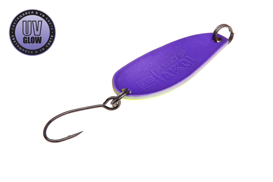 Vartiklės svoris – 2,3g, ilgis 29mm, plotis 11mm. Šviečia UV šviesoje