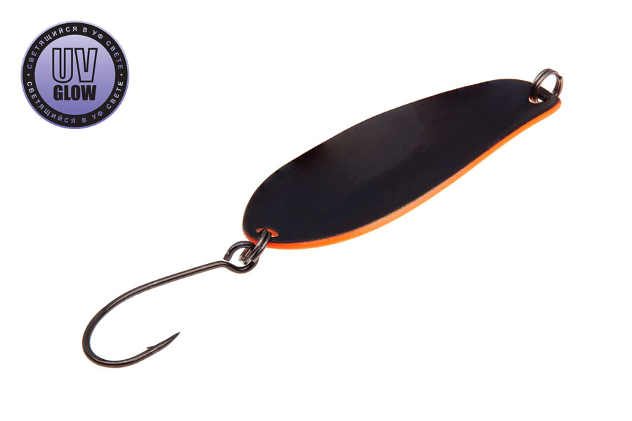Vartiklės svoris  – 4.8g, ilgis 42mm, plotis 16mm. Blizgutės pagamintos iš 1mm storio žalvario, su Mustad kabliuku. Šviečia UV šviesoje