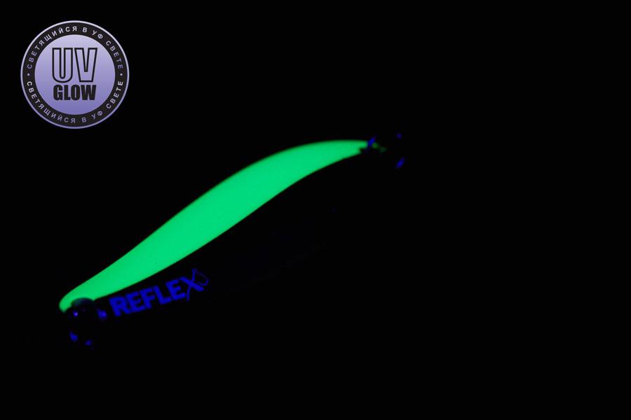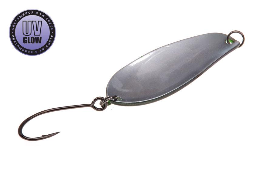 Vartiklės svoris – 4.8g, ilgis 42mm, plotis 16mm. Blizgutės pagamintos iš 1mm storio žalvario, su Mustad kabliuku. Šviečia UV šviesoje