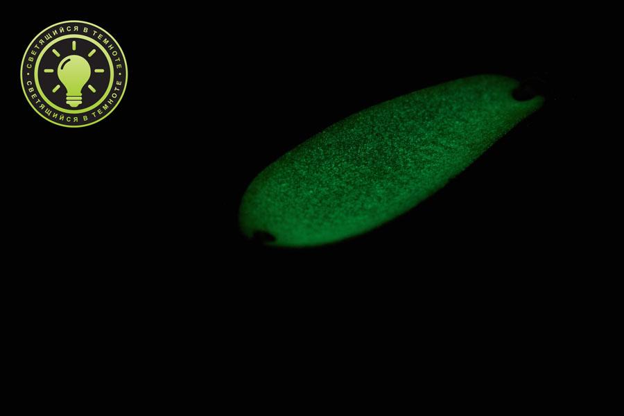 Vartiklės svoris  – 4.8g, ilgis 42mm, plotis 16mm. Blizgutės pagamintos iš 1mm storio žalvario, su Mustad kabliuku. Šviečia tamsoje