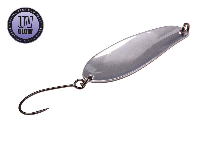 Vartiklės svoris – 4.8g, ilgis 42mm, plotis 16mm. Blizgutės pagamintos iš 1mm storio žalvario, su Mustad kabliuku. Šviečia UV šviesoje