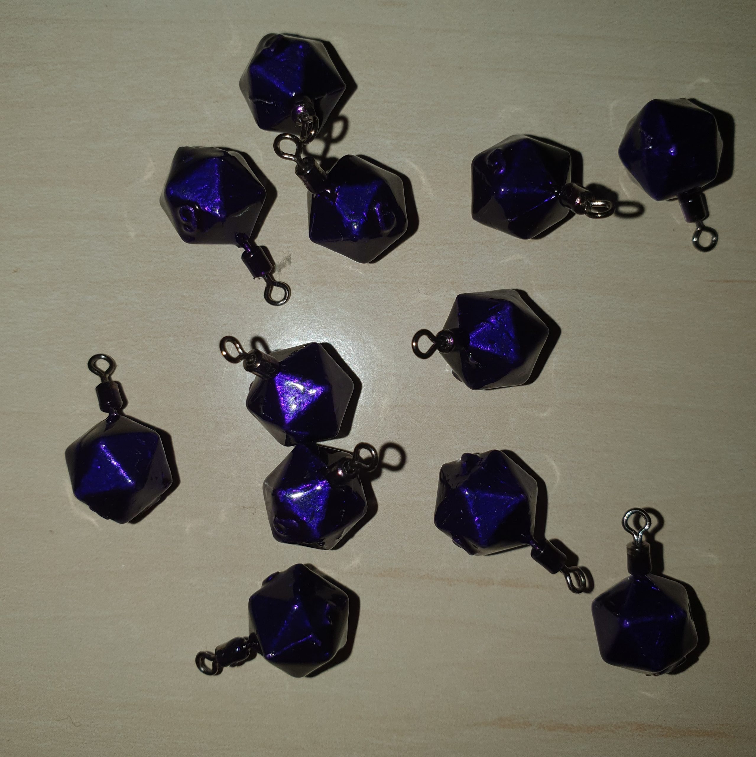 Jig Rig Faceted svareliai iš švino, violetinės spalvos ir su suktuku.