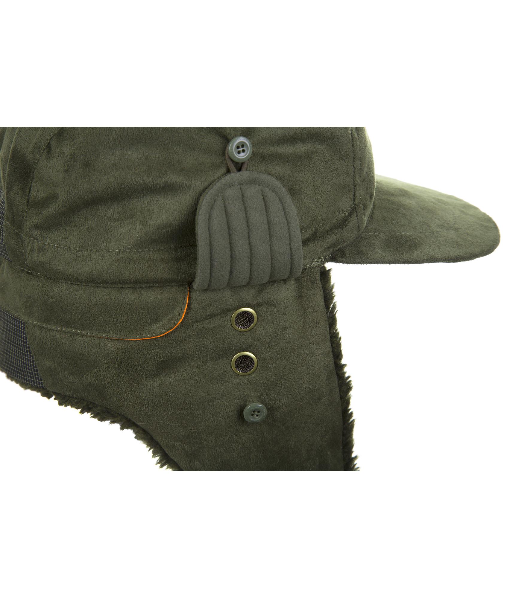 Graff 154-O-B – žieminė Graff kepurė. Šilta, funkcionali medžiotojų kepurė. Su profiliuota smaile, apsaugančia akis nuo saulės, lietaus ir sniego. Viduje ir ant ausų atvartai iškloti ekologišku kailiu. Pagaminta iš audinio su kvėpuojančia BRATEX membrana, kurios dėka dangtelis yra atsparus vandeniui ir vėjui. Ausų atvartai gali būti pritvirtinti viršuje arba pritvirtinti prie smakro reguliuojamu dirželiu, kad kepurė geriau priglustų prie galvos.