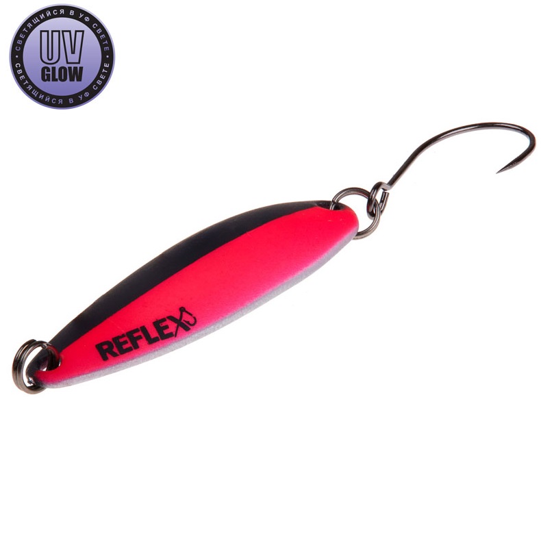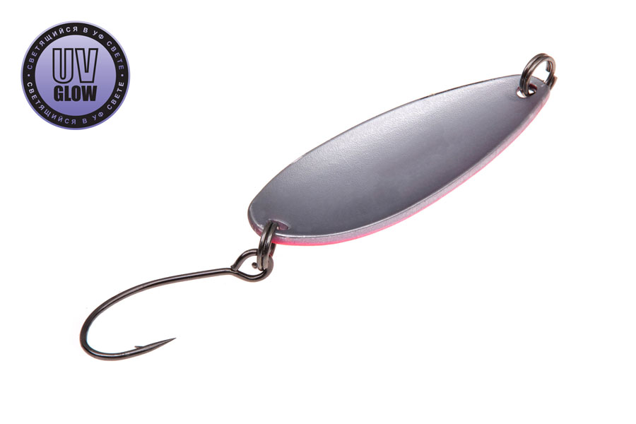 Blizgutės ilgis 35mm, plotis 13mm, svoris 3,1gr. Mustad kabliukai. Pagamintos iš 1mm storio žalvario. Šviečia UV šviesoje