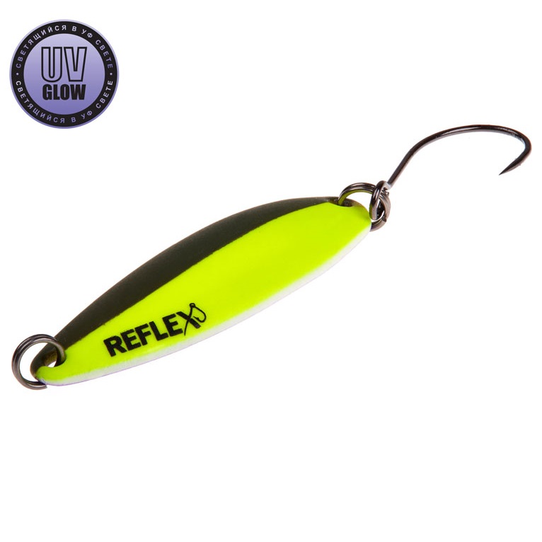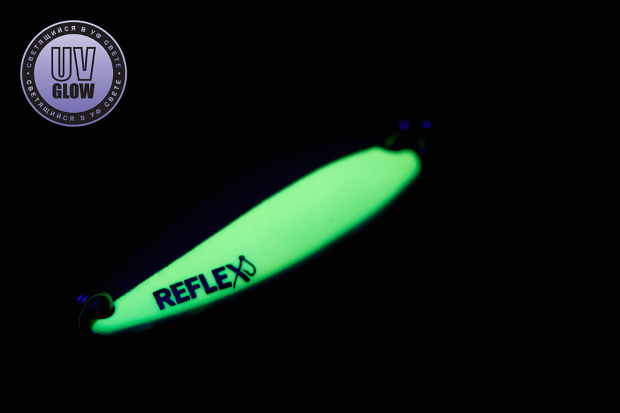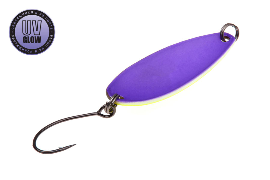 Blizgutės ilgis 35mm, plotis 13mm, svoris 3,1gr. Mustad kabliukai. Pagamintos iš 1mm storio žalvario. Šviečia UV šviesoje