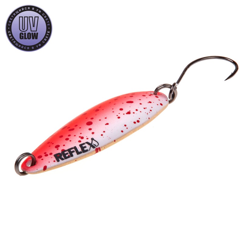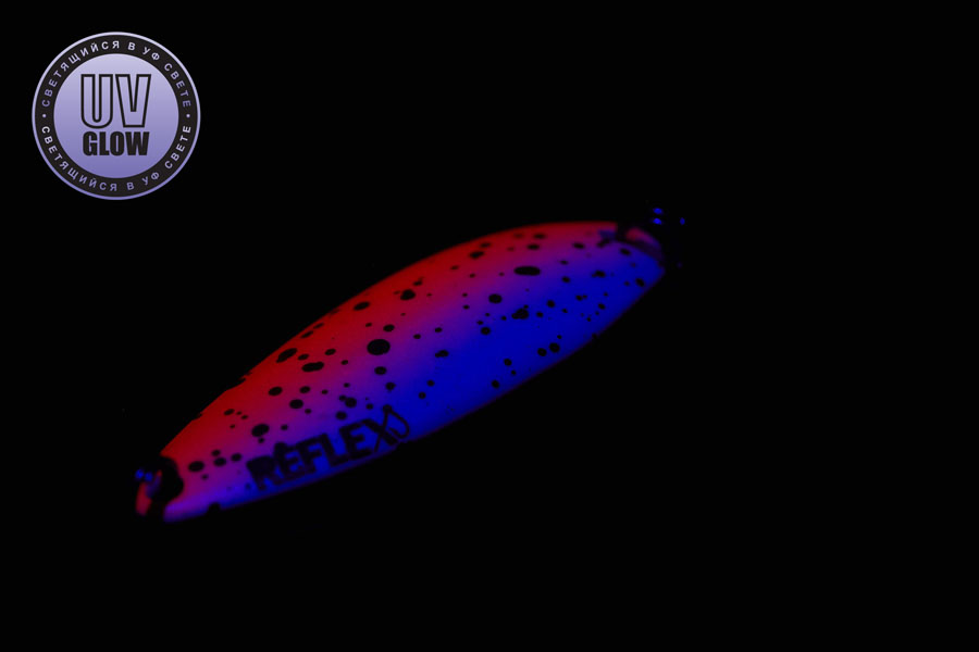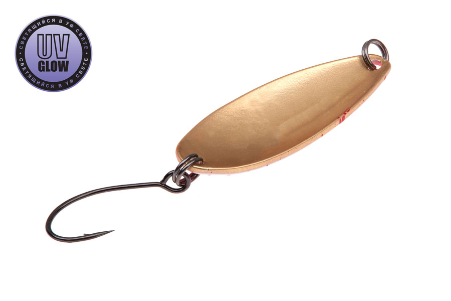 Blizgutės ilgis 35mm, plotis 13mm, svoris 3,1gr. Mustad kabliukai. Pagamintos iš 1mm storio žalvario. Šviečia UV šviesoje