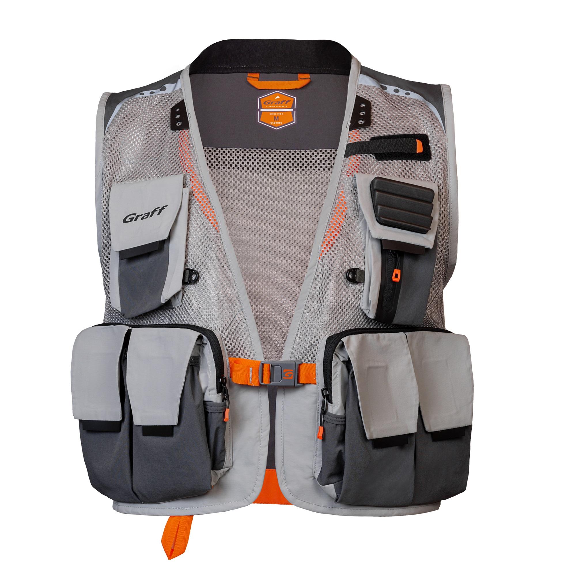 GRAFF 329 – žvejybinė liemenė yra profesionali žvejų liemenė, pagaminta iš 3 sluoksnių audinio su Bratex® membrana. Liemenės versija, kurios pagrindo audinys yra tinklelis, užtikrinantis padidintą oro cirkuliaciją, padidinantis naudojimo komfortą karštomis dienomis. Specialiai sukurtas kirpimas ir elastingo audinio naudojimas daro liemenę itin patogią, suteikiančią patogumą naudoti net ir per daugelį naudojimo valandų. Įrengta 18 įvairaus tipo kišenių, liemenėje tilps visi reikalingi žūklės reikmenys. Lankstus audinys leidžia sudėti įvairaus tipo/formų daiktus, padeda apgalvotai tolygiai paskirstyti apkrovą išlaikant visą funkcionalumą.