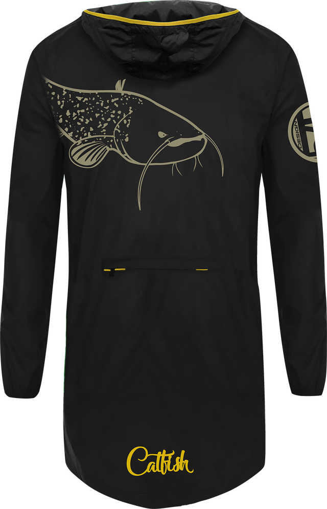 Lietpaltis Fishing Mania Catfish – pasiūtas iš techninio audinio – 100% tvirto nailono, kuris apsaugo nuo vandens ir vėjo.