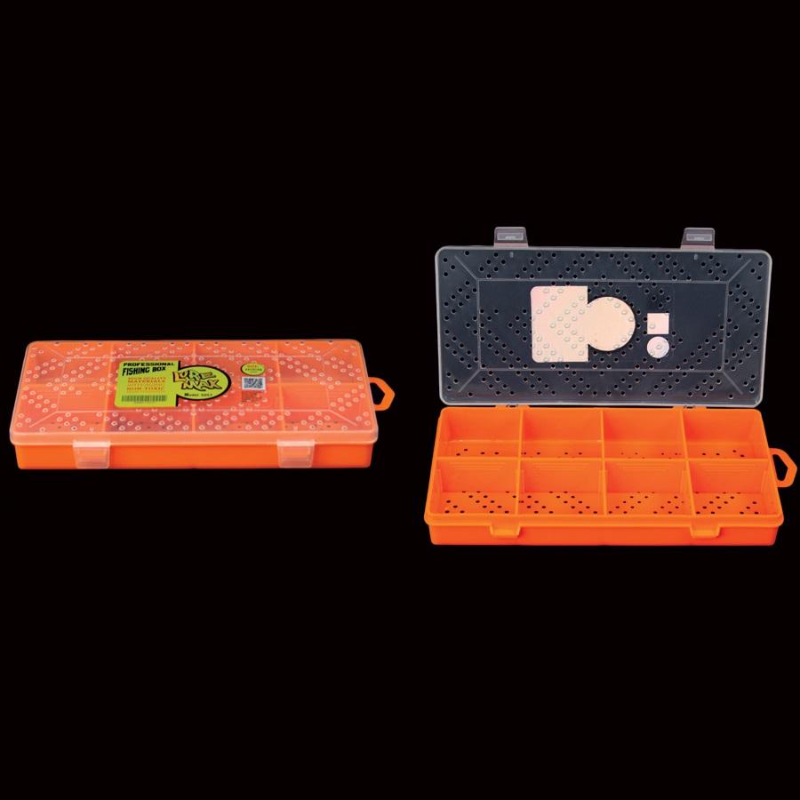 LureMax 5057 – Luremax dėžutė iš patvaraus plastiko. Yra specialios skylės kurios leidžia greitai išdžiovinti dėžutės turinį. Su keičiamoms pertvarom galima įdiegti iki 8 skyrių. Dėžutė vidutinių matmenų, puikiai tinka mažiems ir vidutinio dydžio masalams laikyti.