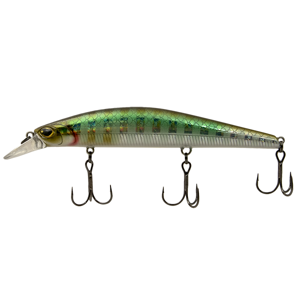 Grasper 110F #044 – vidutinio dydžio „Minnow“ vobleris gali būti naudojamas tiek tvičinimui, tiek tolygiam pravedimui. Modelis idealiai tinka aktyvios lydekos paieškai ir didelių vandens zonų greitajai žvejybai. Jame sumontuota ilgo nuotolio užmetimo sistema, kurią sudaro magnetas ir metaliniai balansuojantys rutuliai, judantys specialiu kanalu masalo viduje. Teigiamas voblerio plūdrumas leidžia jį naudoti gaudant plėšrūną sekliose rezervuaro vietose naudojant „Stop & Go“ pravedimą. Masalas yra su kabliukais iš Saikyo (Japonija).