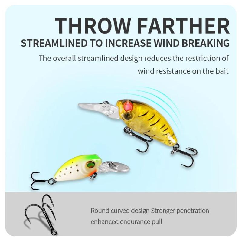 Visi vobleriai apginkluoti ypač aštriais, tvirtais trišakiais kabliais ir kokybiškais žiedeliais, tad įsigijus šį masalą jų keisti tikrai neprireiks!