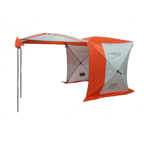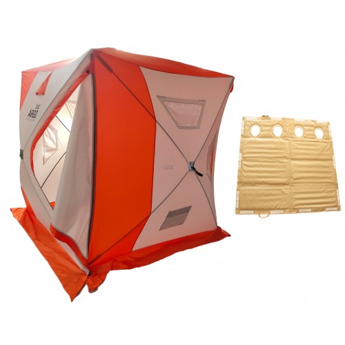 Palapinė turi dvi duris su dvipusiais užtrauktukais kurie nuo vėjo ir lietaus apsaugoti atvartais. Vienas palapinės šonas pilnai atidaromas ir pakeliamas naudojant metalinius teleskopinius stulpelius, tad palapinė tampa universalesnė, galima naudoti ir kitais metų laikais žvejyboje ar poilsiui gamtoje. Palapinėje yra keturi skaidrūs langai kuriuos esant reikalui galima uždengti. Palapinėje yra dvi ventiliacijos angos per kurias į vidų patenka ir pasišalina oras, bei kondensatas. Rėmo konstrukcija iš 11 milimetrų stiklo pluošto pilnavidurių vamzdelių, kurie pasižymi dideliu tvirtumu, gerai įtempia palapinės sieneles, atlaiko dideles vėjo apkrovas. Palapinės šarnyrai metaliniai, todėl daugkartinis palapinės naudojimas neturės jokių pasėkmių. Komplekte yra 8 sraigtiniai tvirtinimo kuoliukai, 4 skirti palapinės kampams, o likę 4 skirti tvirtinimo virvėms nuo palapinės kampų tvirtinimui prie ledo, papildomam palapinės stabilumui užtikrinti. Komplekte taip pat yra 2 tinkliniai krepšiai (30x40cm) kuriuos galima tvirtinti prie rėmo konstrukcijos bet kurioje vietoje. Viskas susideda į transportavimo krepšį. Spalvų derinys (šviesiai pilka/oranžinė) nedirgina akių, o palapinėje dienos metu nereikės naudoti šviestuvo. Palapinę rekomenduojama statyti dviese, pirma ištempiamas stogas (oranžinis), tada vienu metu ištempiamos priešingos sienos.