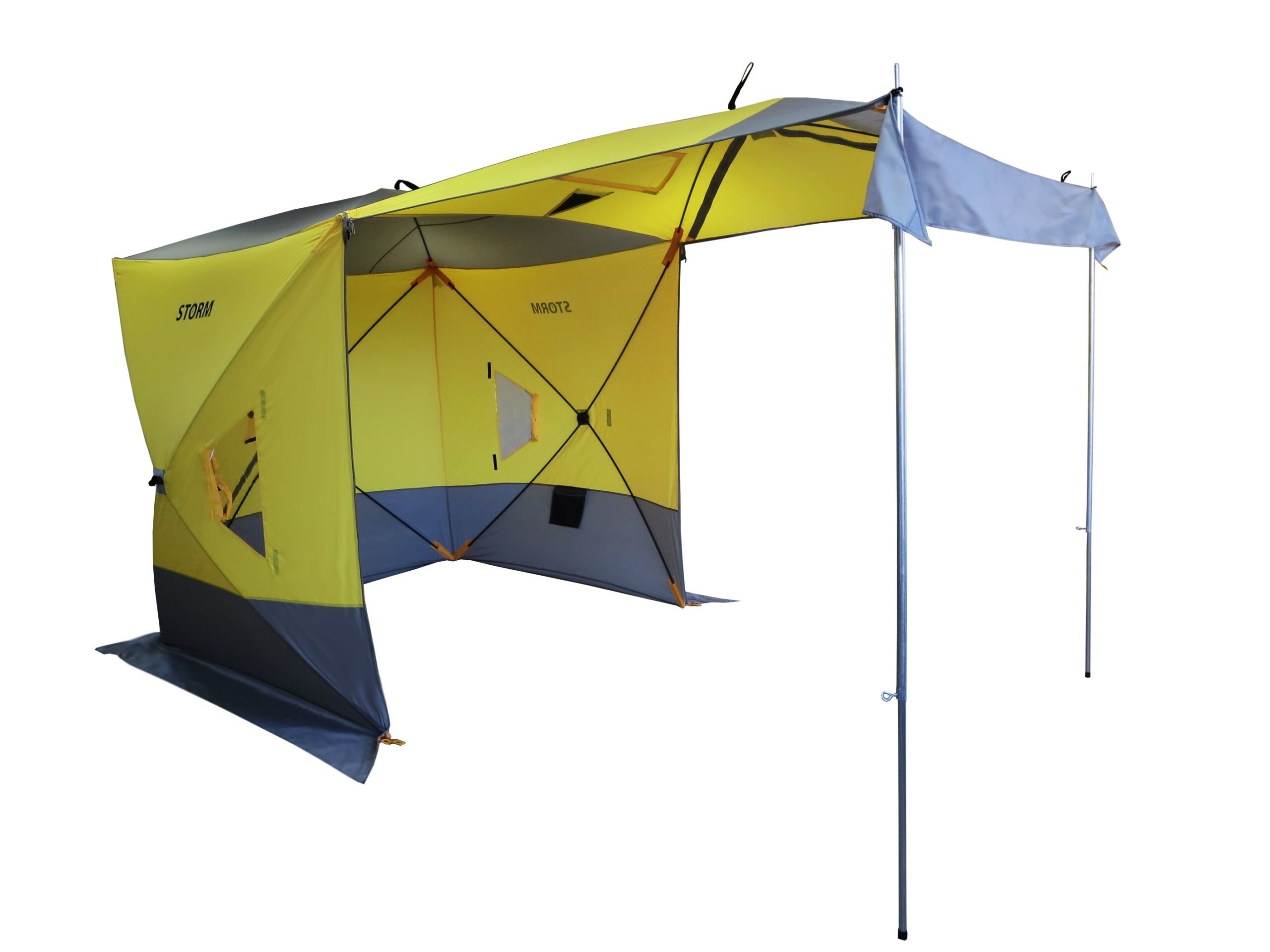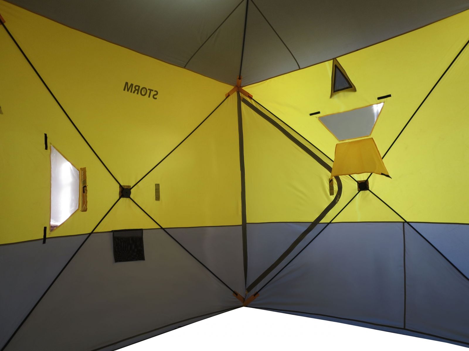 Palapinė STORM dviguba – skirta žvejybai žiemai ant ledo. Palapinė apsaugos jus nuo sniego, vėjo ir neleis Jums sušalti. Palapinės pagamintos iš patvarios drėgmės nepraleidžiančios medžiagos, atsparios ugniai, bei sulaikanti vėją. Praleidžia šviesą, bet neišleidžianti šilumos, palapinėje jus jausitės jaukiai ir komfortiškai.