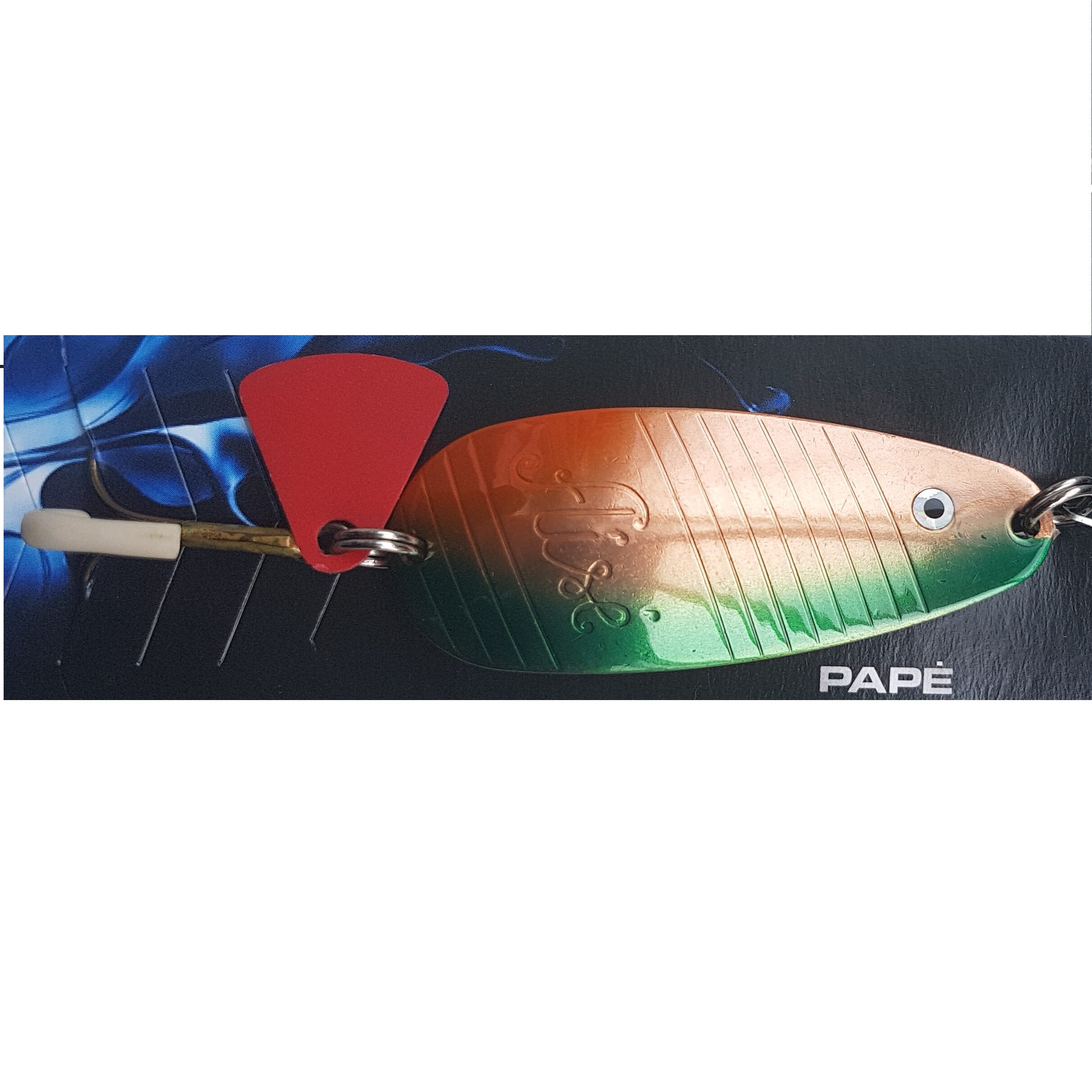 Papė II 21gr varis dažytas – skirta žvejybai vidaus vandenyse, idealiai tinka lydekoms gaudyti. Blizgės pagaminamos iš vario, dažytos.