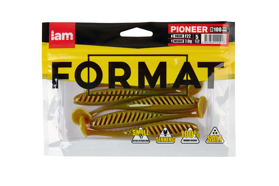 Pioneer 100mm F22 – tai yra klasikinis masalas su vibro uodega, turinti hibridinį kūną, sujungiantį lygų masalą, atsparesnį plėšrūno dantims, ir briaunotą kūną, kuris sulaiko orą tarp briaunelių, imituodamas realų žuvies elgesį vandenyje. Bet šie parametrai nėra pagrindiniai šio masalo pranašumai, tiksliau, šie parametrai yra estetiškesni. Pagrindinis šio modelio pranašumas yra unikalus kūno balansas, o tai daro labai neįprastą poveikį masalo žaidimui.