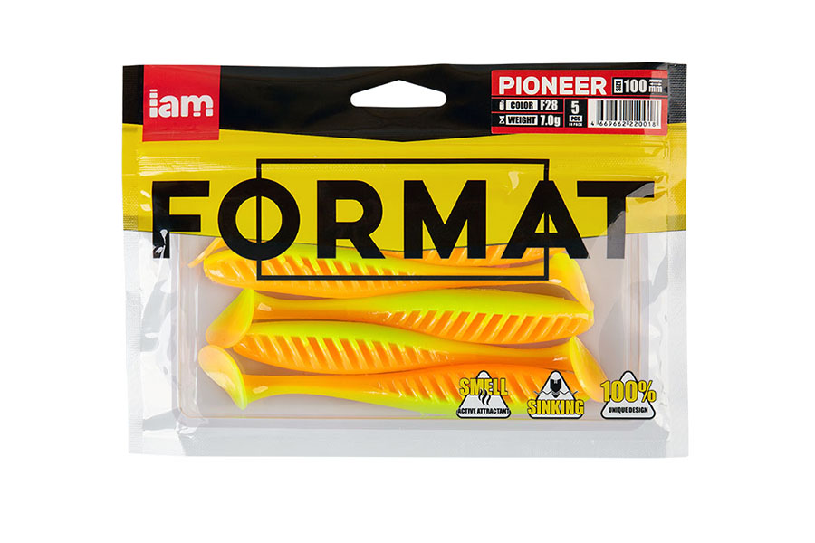 Pioneer 100mm F28 – tai yra klasikinis masalas su vibro uodega, turinti hibridinį kūną, sujungiantį lygų masalą, atsparesnį plėšrūno dantims, ir briaunotą kūną, kuris sulaiko orą tarp briaunelių, imituodamas realų žuvies elgesį vandenyje. Bet šie parametrai nėra pagrindiniai šio masalo pranašumai, tiksliau, šie parametrai yra estetiškesni. Pagrindinis šio modelio pranašumas yra unikalus kūno balansas, o tai daro labai neįprastą poveikį masalo žaidimui.