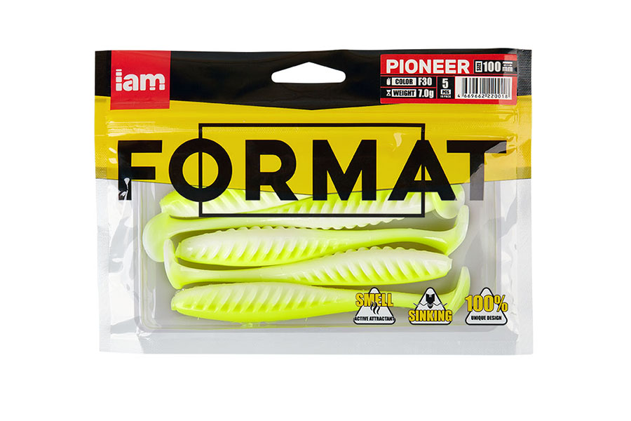 Pioneer 100mm F30 – tai yra klasikinis masalas su vibro uodega, turinti hibridinį kūną, sujungiantį lygų masalą, atsparesnį plėšrūno dantims, ir briaunotą kūną, kuris sulaiko orą tarp briaunelių, imituodamas realų žuvies elgesį vandenyje. Bet šie parametrai nėra pagrindiniai šio masalo pranašumai, tiksliau, šie parametrai yra estetiškesni. Pagrindinis šio modelio pranašumas yra unikalus kūno balansas, o tai daro labai neįprastą poveikį masalo žaidimui.