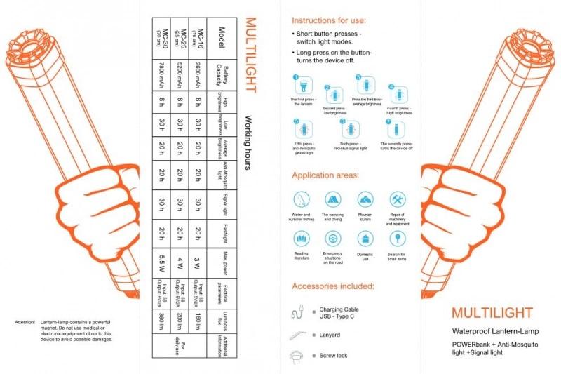 Powerbank + Mosquito (vabzdžius atbaidanti) lemputė + Signalinė lemputė.