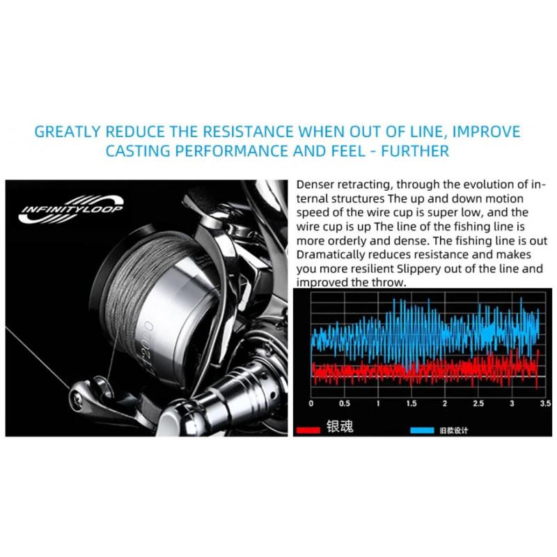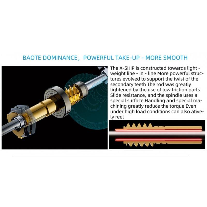 - 5,5:1 perdavimo santykis, kas sufleruoja, kad ritė yra vidutiniškai greita ir tinkama bet kokio tipo spiningavimui.
