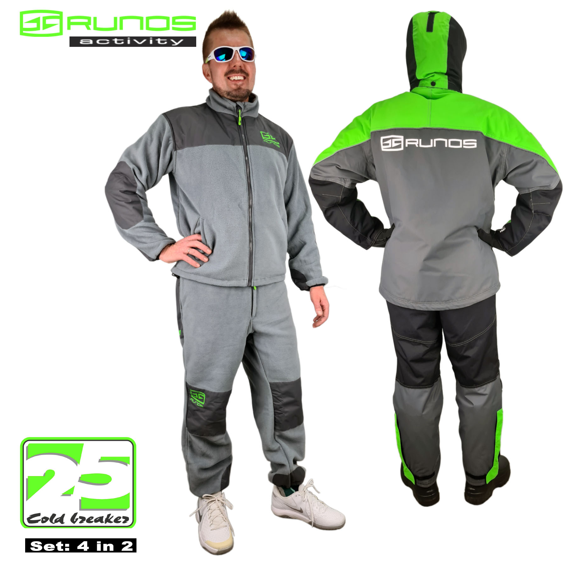 Runos Coldbreaker 25 – sportiškas, nevaržantis judesių, skirtas aktyviai žvejybai 4-rių dalių kostiumas –  pavasaris/žiema/ruduo.