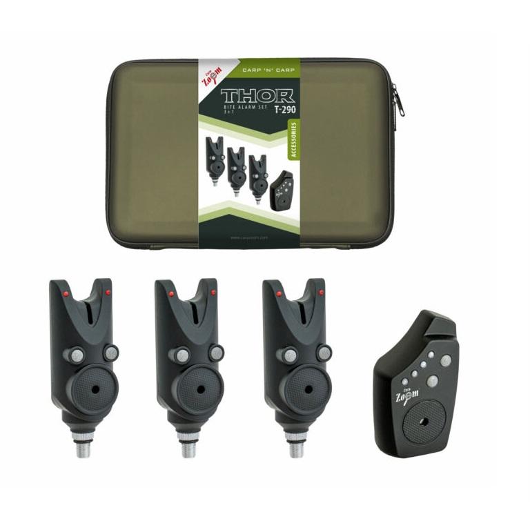 Thor T-190 – Carp Zoom signalizatorių rinkinys. Patikimas signalizacijos įrenginys yra neatsiejama kiekvieno karpininko dalis ilgoje žvejyboje. 3 signalizatorių įrenginių komplektas, aprūpintas patikimais didelio ryškumo šviesos diodais, turinčiais ilgą tarnavimo laiką ir nuotoliniu stebėjimu 100 – 150 m nuotoliu praktišku atveju atitinka visus tokiai žvejybai keliamus reikalavimus. Dėl įmontuoto universalaus lizdo galima prijungti bet kokio tipo šviečiantį svingerį.