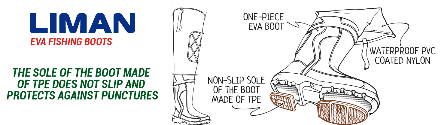 Torvi Liman – žvejybiniai batai, kurie lengvi, neperšlampami, šilti ir elastingi. Jie sukurti pagal TORVI Universal modelį, t.y., EVA batas hermetiškai pritvirtintas prie nailono viršaus su PVC danga.