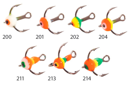 Trišakiai Ecopro – lašo formos ir įvairių spalvinimų. Komplekte 9vnt, įvairių spalvų. Naudojami švytuoklėm-balansyrams, blizgutėms ir kitiems masalams. Pagaminti ant prancūziškų VMC kablių.