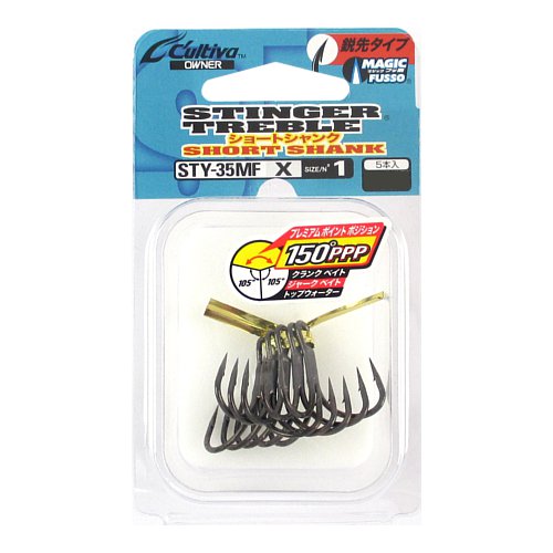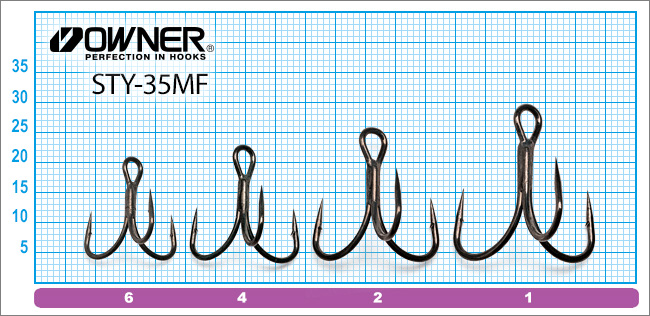 STY-35MF – Owner trišakiai specialiai optimizuoti panaudojimui vobleriuose. Jei įprastiniu trišakių viršutiniai du kabliai yra prisispaudę arti masalo korpuso, tai naujųjų STY-35MF yra išlenkti labai plačiu kampu ir yra gerokai toliau nuo voblerio šonų, taip pagerindami žuvies pakirtimą.