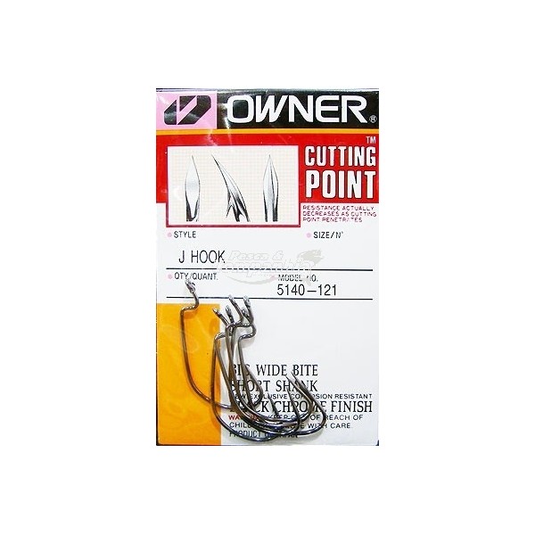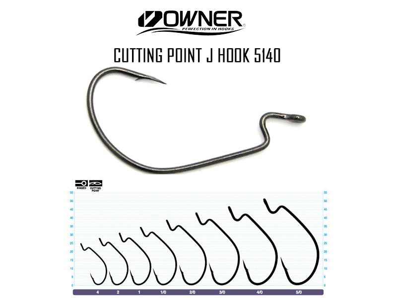 J Hook 5140 – Owner japoniški offsetiniai kabliukai, su ypač plačiu lenkimu. Puikiai tinka didesniems plastikiniams masalams. Tinka naudoti sistemoms „Carolina” ir „Texas”. Cutting Point® smaigalys ir juodo chromo padengimas. Pakelyje yra 6 kabliukai.
