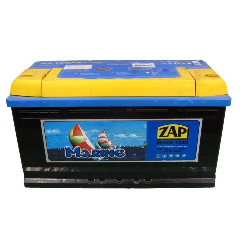 ZAP 100 Ah – gilaus iškrovimo (deep cycle) 100 Ah traukos akumuliatorius, skirtas elektriniams valčių varikliams, elektros ir valdymo įrenginiams.